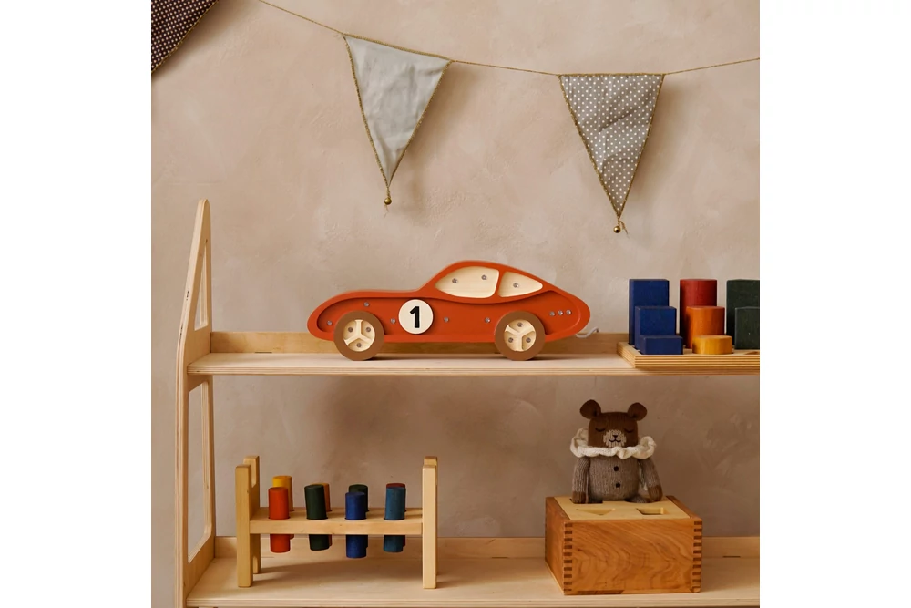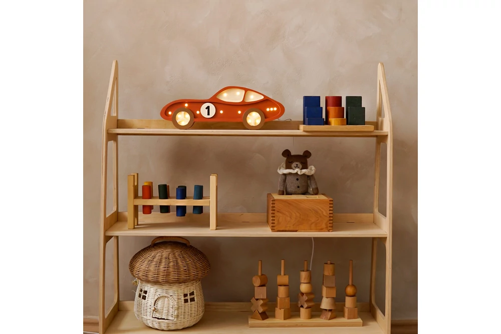 A tömör fenyőfából készült roomGAGA lámpa egyszerre dekorál és meleg fénnyel árasztja el a gyerekszobát.