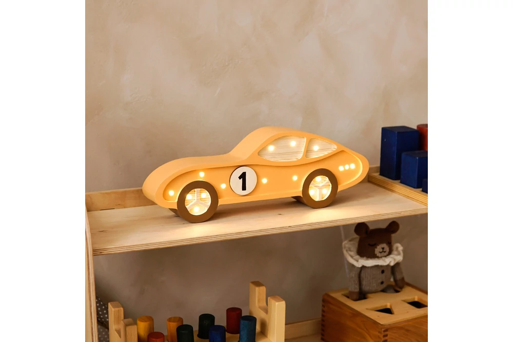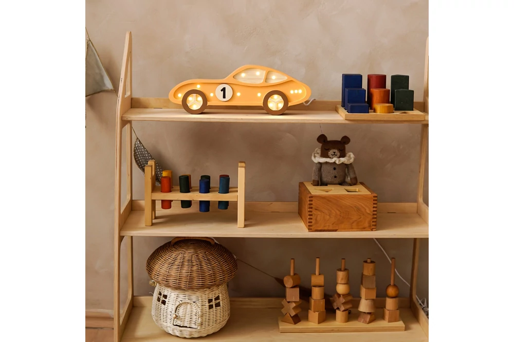 A tömör fenyőfából készült roomGAGA lámpa egyszerre dekorál és meleg fénnyel árasztja el a gyerekszobát.