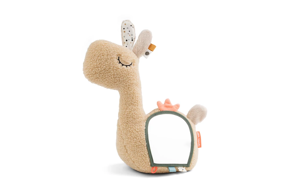 A kicsik jól szórakoznak a tükörképükön, ez a földön álló babatükör pedig tökéletes arra, hogy közben még a hasalást is élvezetessé tegye a baba számára. Számos matatnivaló található rajta, így színes címkék, különböző textúrák, csörgős-zörgős anyagok, nagyszerű felfedeznivalók a kis szemek és ujjak számára és még apróbb játék is rögzíthető a tükör alján található hurokhoz.