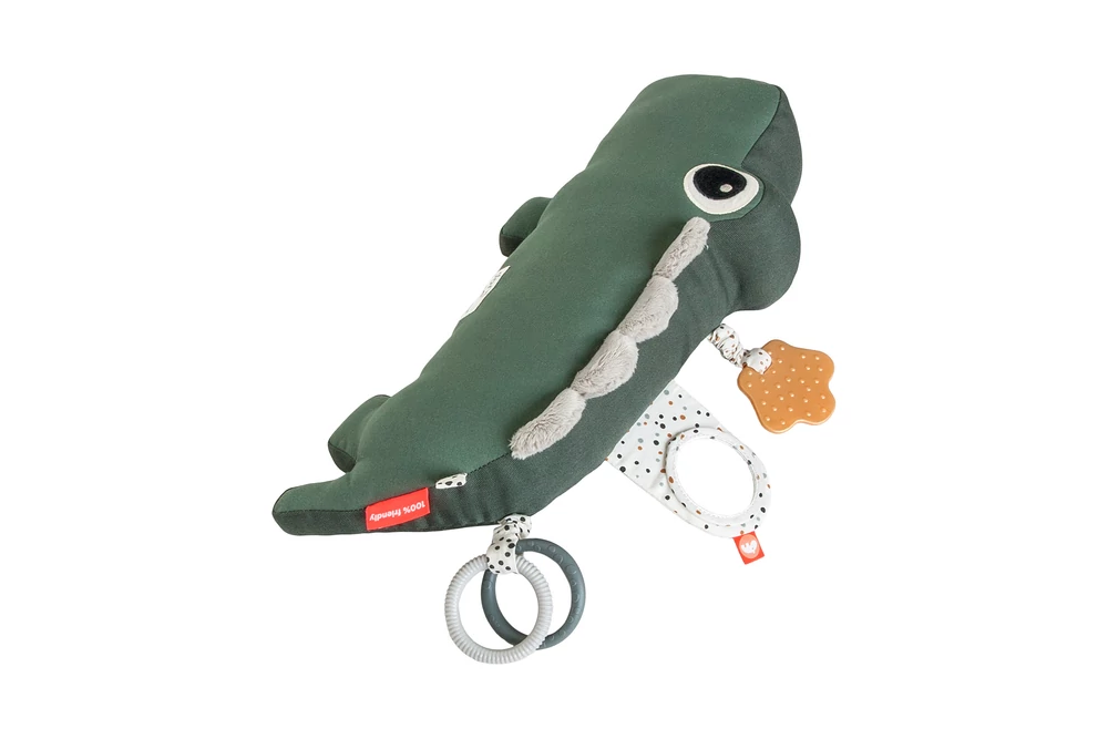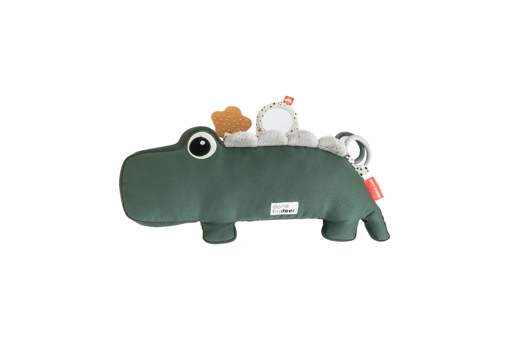 Croco társaságában igazán jól telik majd a hason töltött idő! Ez a hasalós párna segít erősíteni babád nyak-és hátizmait játék közben. Számos érdekes felfedeznivalóval rendelkezik azért, hogy segítse a hosszabb és még aktívabb hason töltött időt. Rágóka segít megnyugtatni az ínyt, tapintható textúrák, egy kis babatükör, címkék, zörgő hangok és egy izgő-mozgó krokodil pocak tartja fenn az állandó érdeklődést.