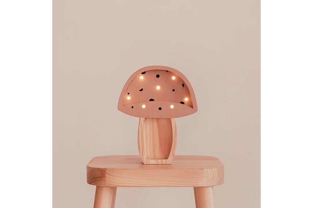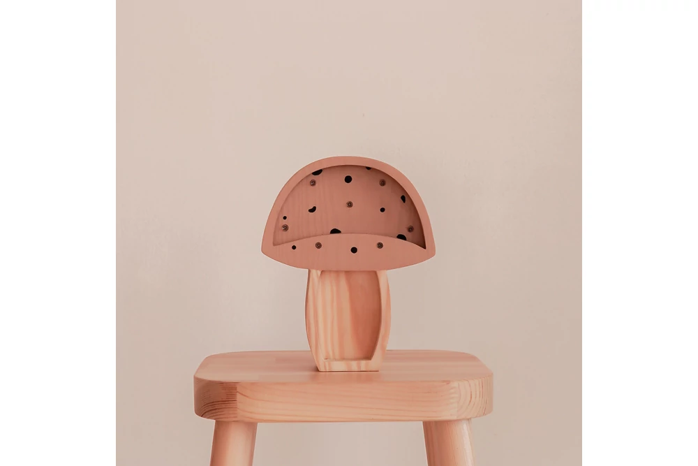 A tömör fenyőfából készült roomGAGA lámpa egyszerre dekorál és meleg fénnyel árasztja el a gyerekszobát.