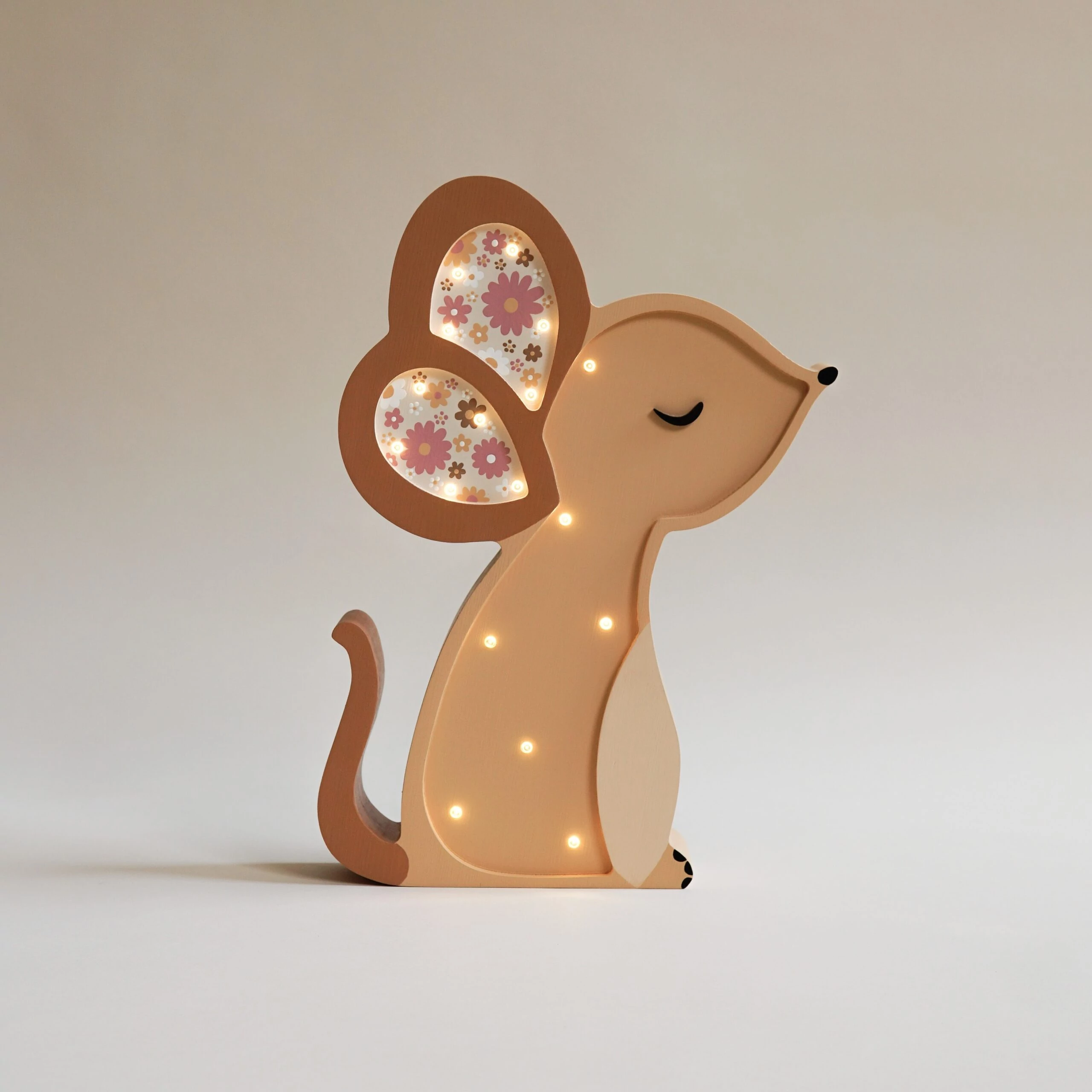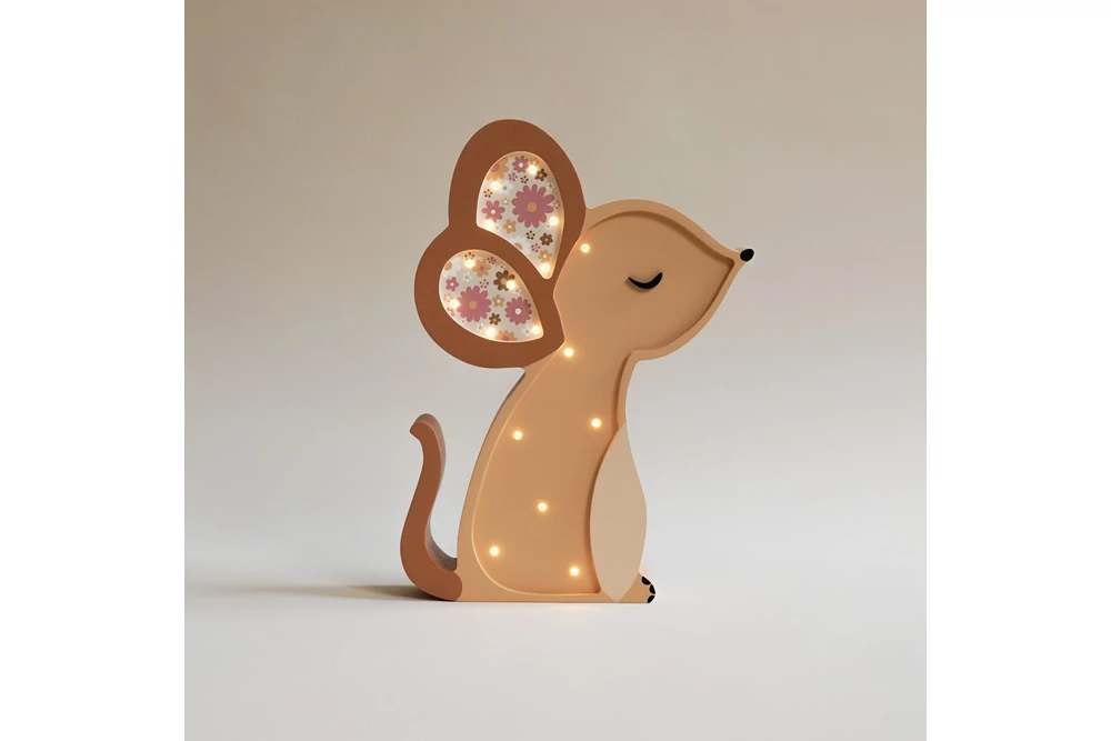 A tömör fenyőfából készült roomGAGA kisegér lámpa egyszerre dekorál és meleg fénnyel árasztja el a gyerekszobát.