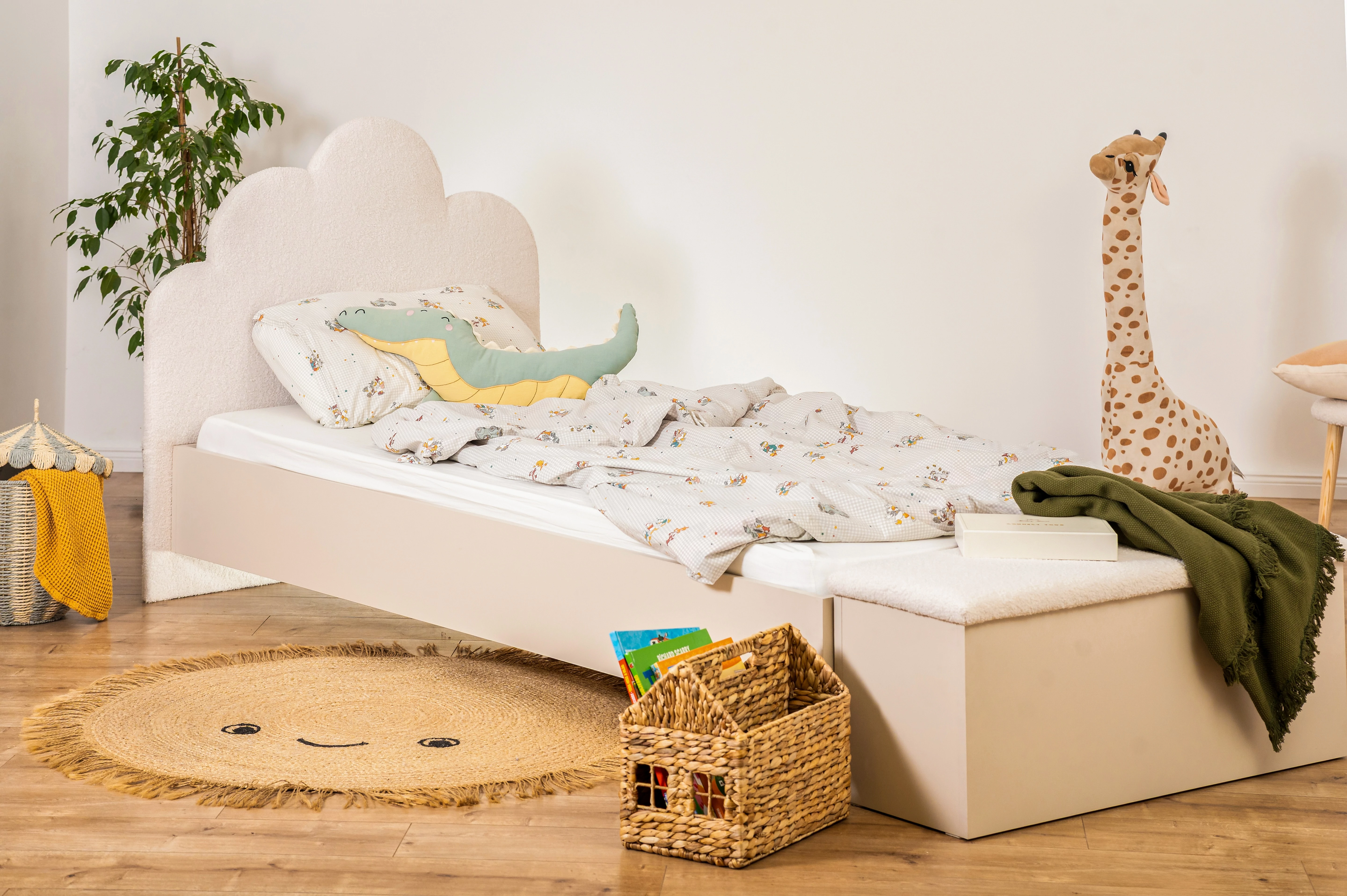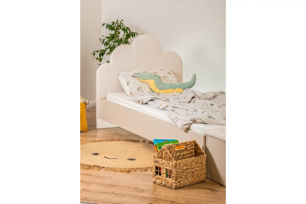 Az ikonikus felhő formájú, kárpitozott fejtámla nemcsak esztétikai élményt nyújt, hanem kényelmes háttámasz esti mesézéshez vagy olvasáshoz is.