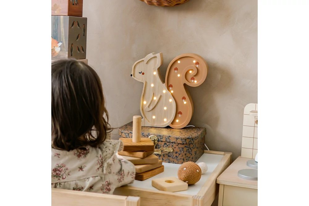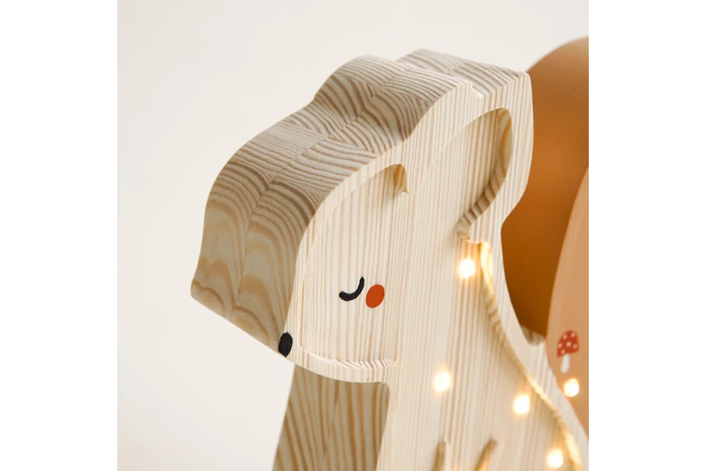 A tömör fenyőfából készült roomGAGA lámpa egyszerre dekorál és meleg fénnyel árasztja el a gyerekszobát.