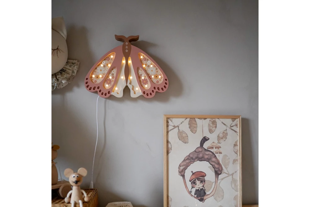 A tömör fenyőfából készült roomGAGA lámpa egyszerre dekorál és meleg fénnyel árasztja el a gyerekszobát.