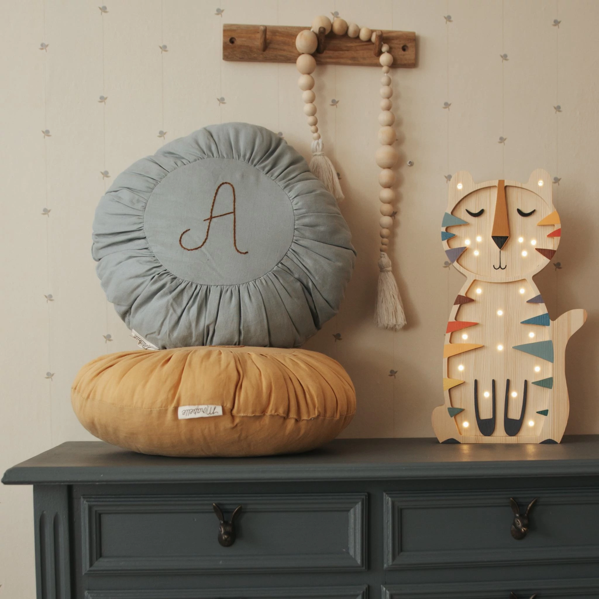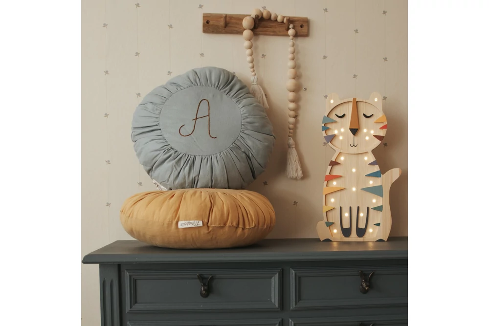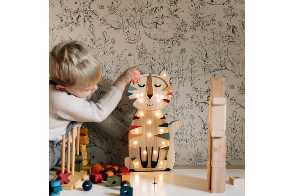 A tömör fenyőfából készült roomGAGA lámpa egyszerre dekorál és meleg fénnyel árasztja el a gyerekszobát.