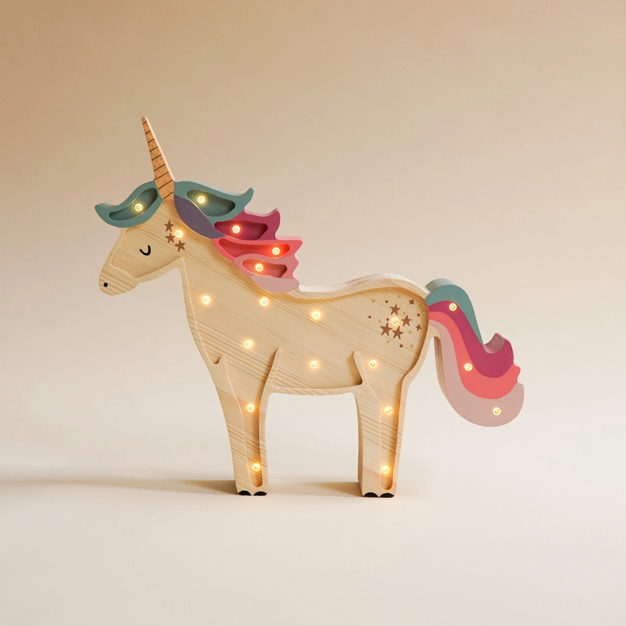 A tömör fenyőfából készült roomGAGA lámpa egyszerre dekorál és meleg fénnyel árasztja el a gyerekszobát.