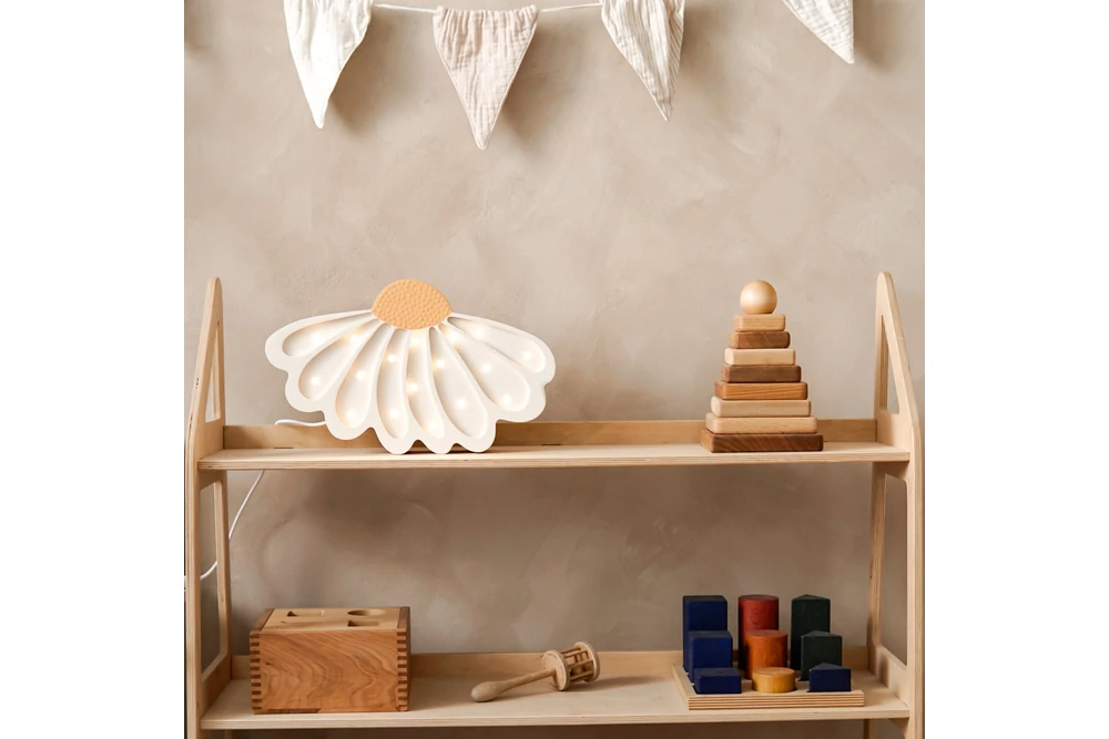 A tömör fenyőfából készült roomGAGA lámpa egyszerre dekorál és meleg fénnyel árasztja el a gyerekszobát.